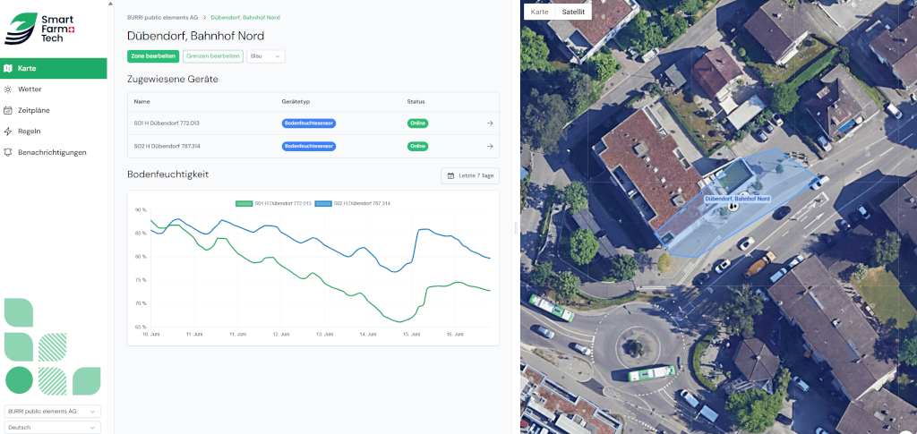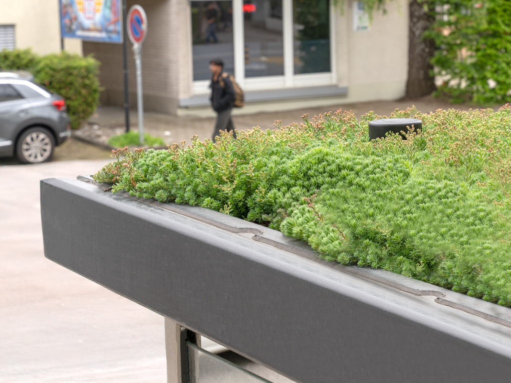 Die neu begrünte Haltestelle setzt ein Zeichen für mehr Lebensqualität im öffentlichen Raum. Damit die Pflanzen auch in heissen, trockenen Phasen gesund bleiben, setzen wir auf unsere remote Monitoring-Lösung: